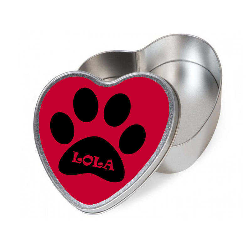 Te spersonalizowane cynowe pudełko w kształcie serca wypełnić można smakowitymi przysmakami dla swego czworonożnego przyjaciela. Stanowi również uroczy prezent dla psiaka Twego najlepszego przyjaciela.